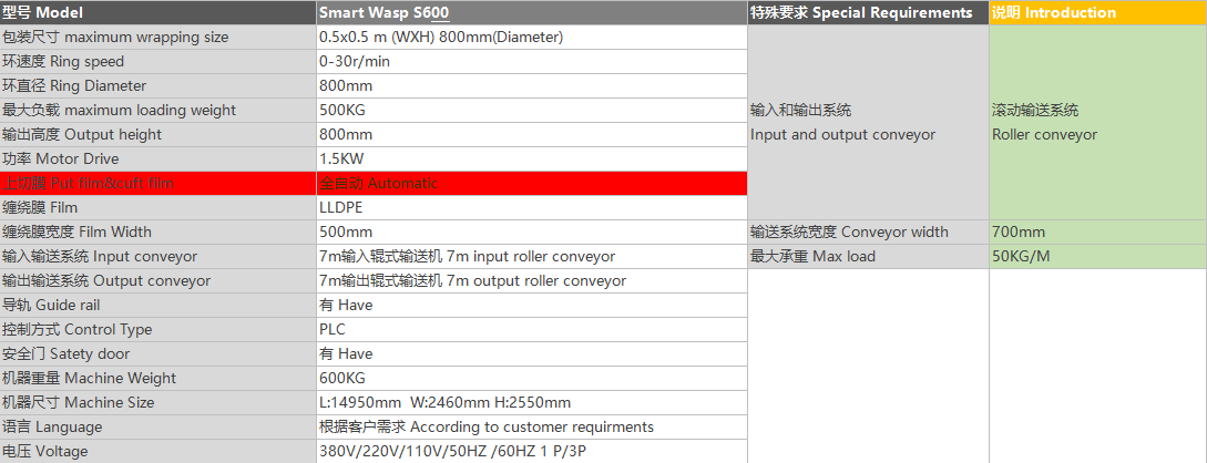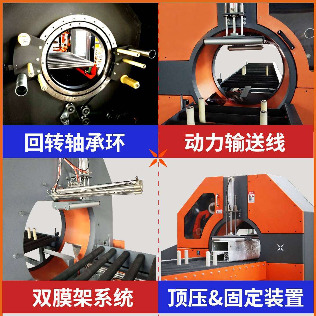 效率,此款設(shè)備針對(duì)于長(zhǎng)條裝貨物及需要六面纏繞打包的需求。